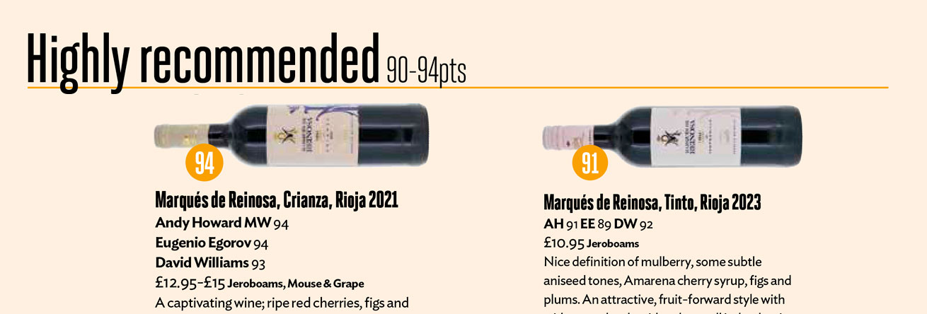 Por otro lado, los expertos de Decanter han valorado positivamente nuestro Marqués de Reinosa tinto 2023. Reconocen que tiene “buena definición de moras, sutiles anisados, jarabe de cereza, higos y ciruelas”. Su análisis también aprecia “un estilo atractivo y frutal con roble evidente pero bien equilibrado y con un toque de especias en un final largo”.