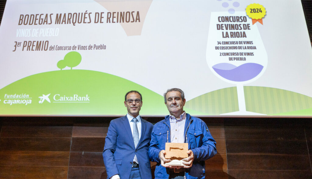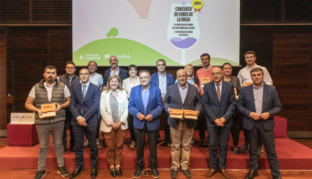El presidente de Fundación Caja Rioja, Pablo Arrieta, y el director de AgroBank de la Dirección Territorial Ebro de CaixaBank, David Navarro, y la consejera de Agricultura, Ganadería, Mundo Rural y Medio Ambiente, Noemí Manzanos, han entregado esta tarde los premios a los vinos ganadores de la edición número 34 del ‘Concurso de Vinos de La Rioja’ y la 2ª edición del ‘Concurso de Vinos de Pueblo’ en las modalidades de vinos tintos, blancos y rosados de la cosecha 2023.